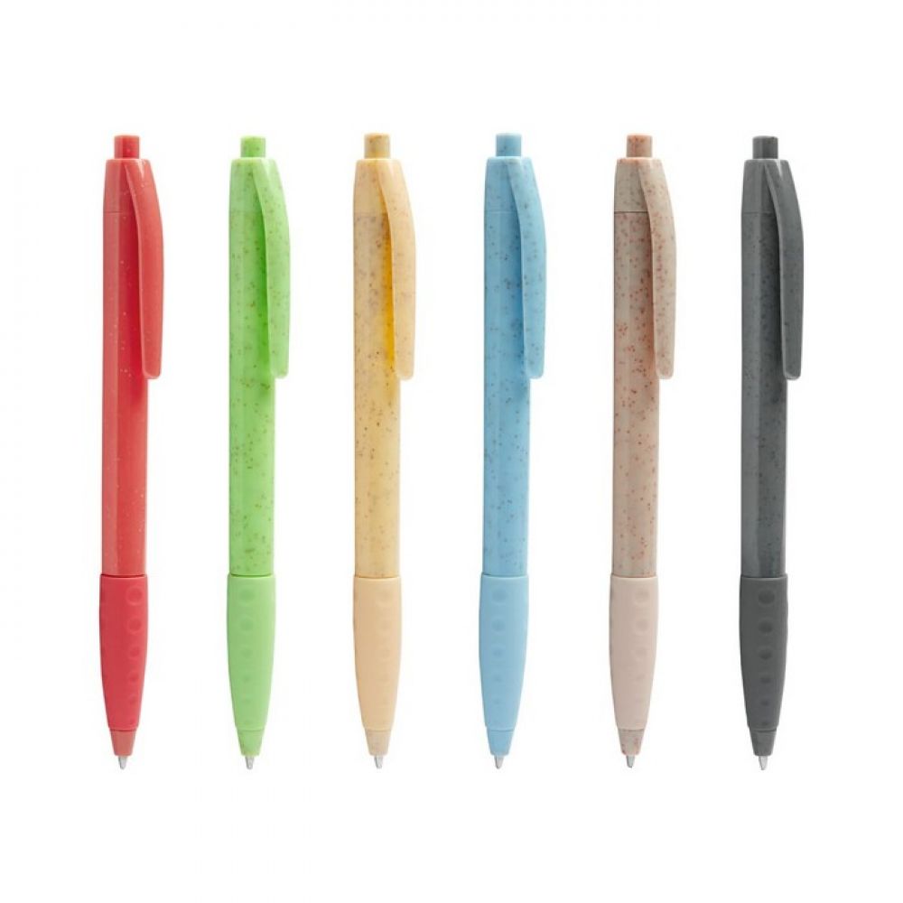 BOLÍGRAFO GRAAN, MATERIAL ECO-FRIENDLY A BASE DE FIBRA DE TRIGO. INCLUYE GRIP DE SILICÓN ANTIDERRAPANTE. MECANISMO PULSADOR., TIPO DE IMPRESIÓN:TAMPOGRAFIA PEQUEÑA, VINIL DTF AREA CHICA, COLORES:AZUL, AMARILLO, BEIGE, AZUL, ROJO, VERDE, GRIS, MEDIDAS:1 X 13.9 CM, MATERIALES DEL PRODUCTO:FIBRA DE TRIGO / PLÁSTICO