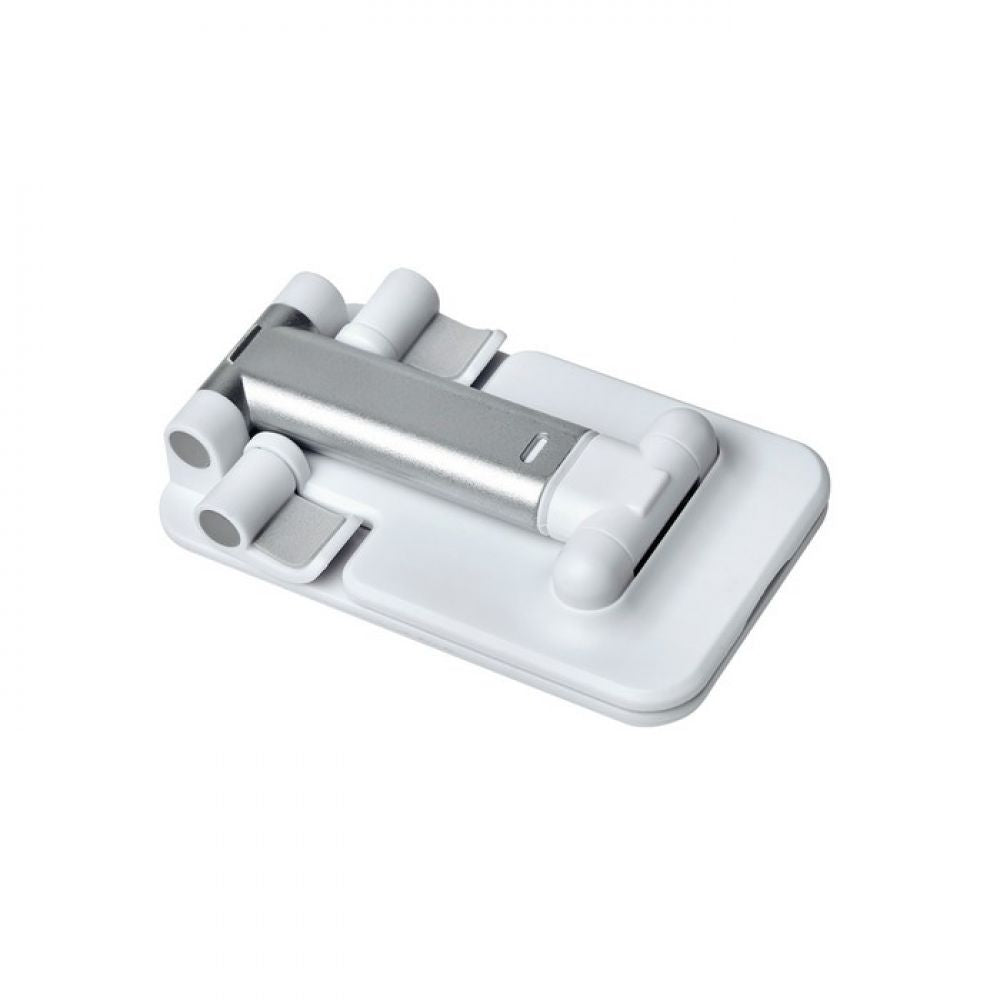 SOPORTE SECHI, SOPORTE PLEGABLE. SOPORTE Y BASE CON MATERIAL ANTIDERRAPANTE. ALTURA E INCLINACIÓN AJUSTABLE. DESPLEGABLE A UNA ALTURA MÁXIMA DE 16 CM., TIPO DE IMPRESIÓN:TAMPOGRAFIA MEDIANA, COLORES:BLANCO, MEDIDAS:6.5 X 10 CM BASE / 16 CM ALTO, MATERIALES DEL PRODUCTO:PLASTICO