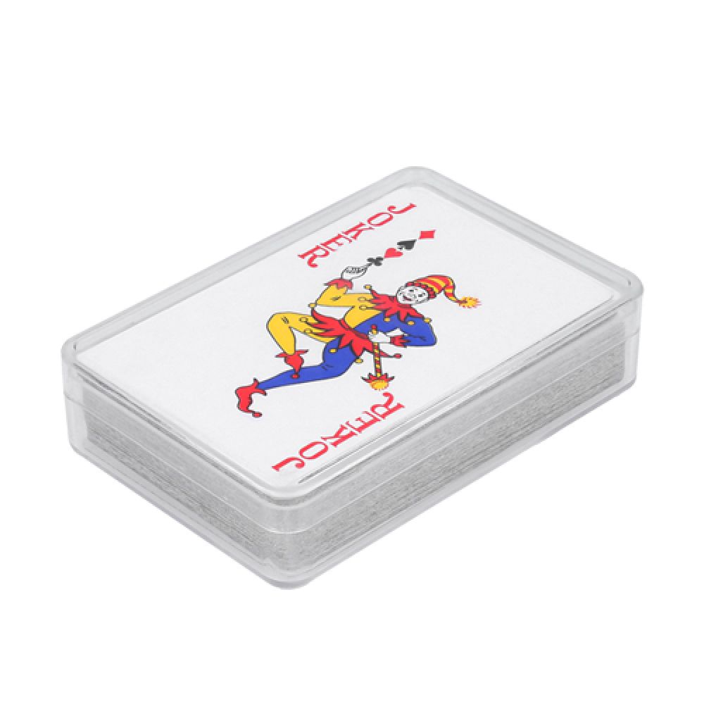 SET DE CARTAS POKER, JUEGO DE CARTAS CON ESTUCHE DE PLÁSTICO, TIPO DE IMPRESIÓN:SERIGRAFIA 8X8, COLORES:UNICO, MEDIDAS:6.3 X 9.4 CM, MATERIALES DEL PRODUCTO:PLASTICO