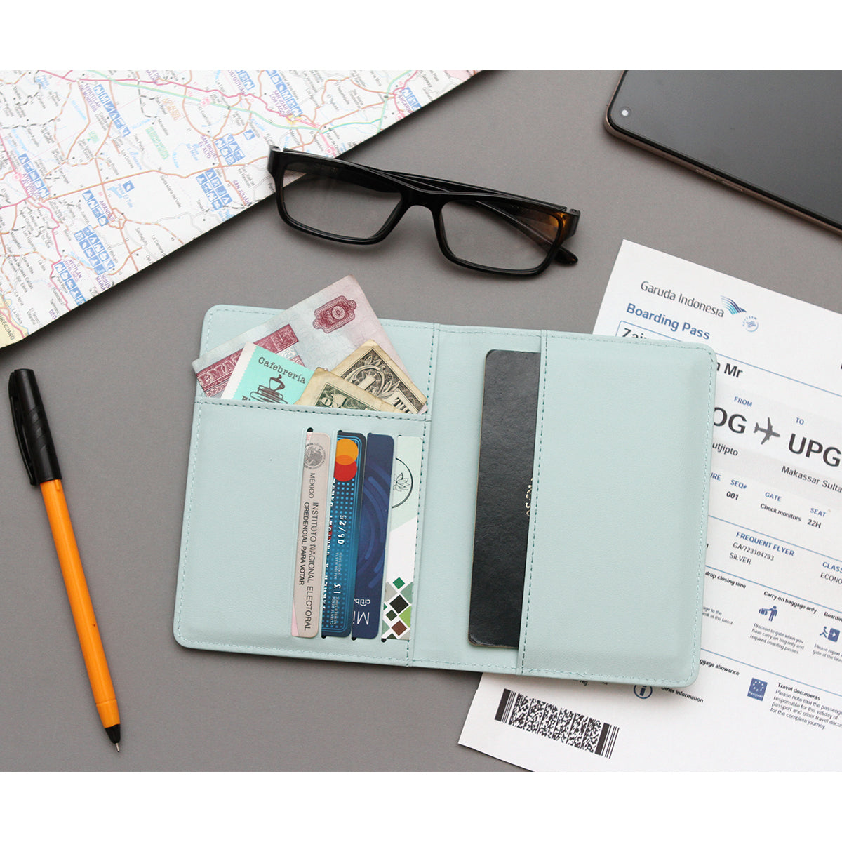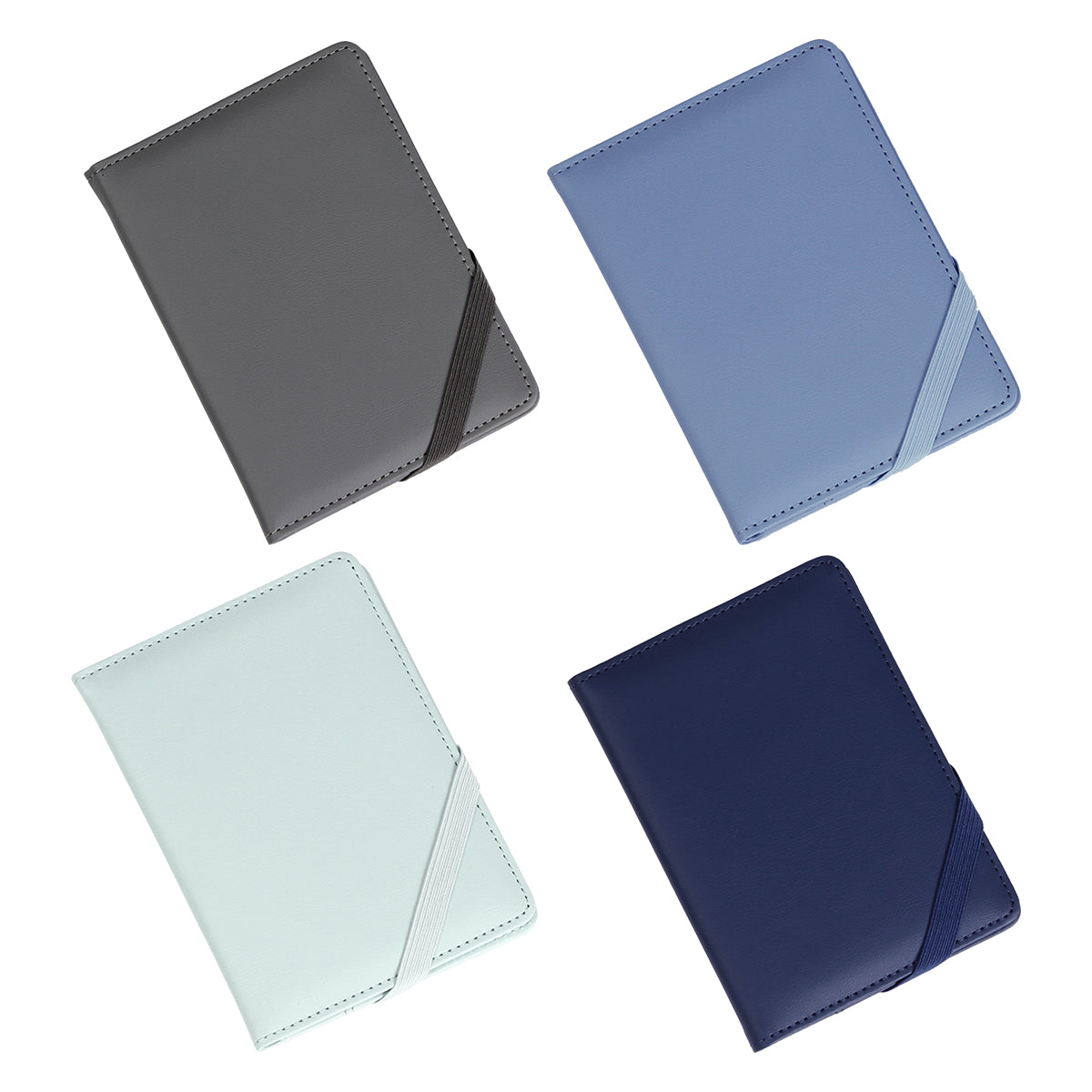 Porta pasaporte fabricado en curpiel, con compartimiento para 4 tarjetas, efectivo u otros papeles. Cuenta con una banda elástica en la parte inferior de este para cerrarlo de manera fácil y eficaz.